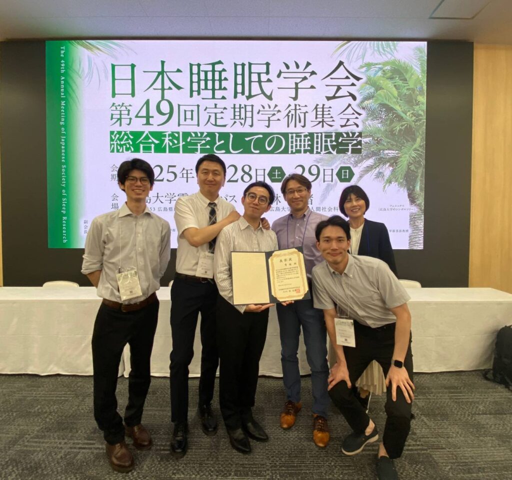 2025年6月28日(土)・29日(日)、広島大学霞キャンパスにて「総合科学としての睡眠学」をテーマに開催された日本睡眠学会第49回定期学術集会に、大藏研究室から薛載勲 助教、李宰熙 研究員、渋谷恭平 研究員、博士3年の曹越が参加し、シンポジウム、口頭発表、ポスター発表を行いました。